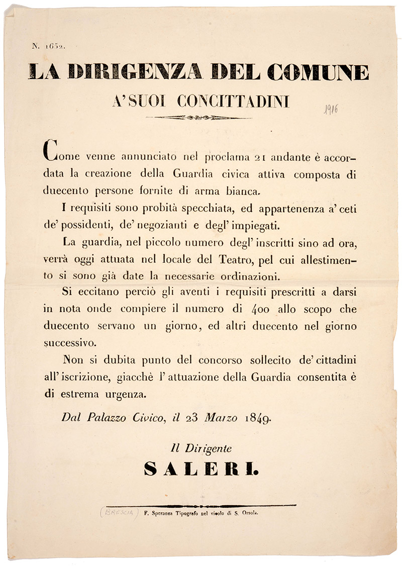 Creazione della Guardia civica, 23 marzo 1849