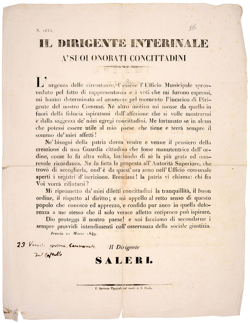 Direzione provvisoria del comune, 21 marzo 1849