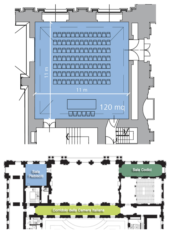 La Sala Plebisciti – 120 mq – decorata con stucchi e affreschi, prende il nome dal grande quadro di A. Capisani, Bettino Ricasoli presenta il Plebiscito toscano a Vittorio Emanuele II (22 marzo 1860).